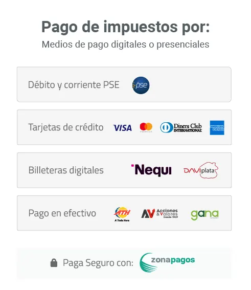 Los ciudadanos pueden pagar mediante PSE, tarjetas débito y crédito y otros canales digitales, facilitando el cumplimiento de sus obligaciones sin desplazamientos ni filas.